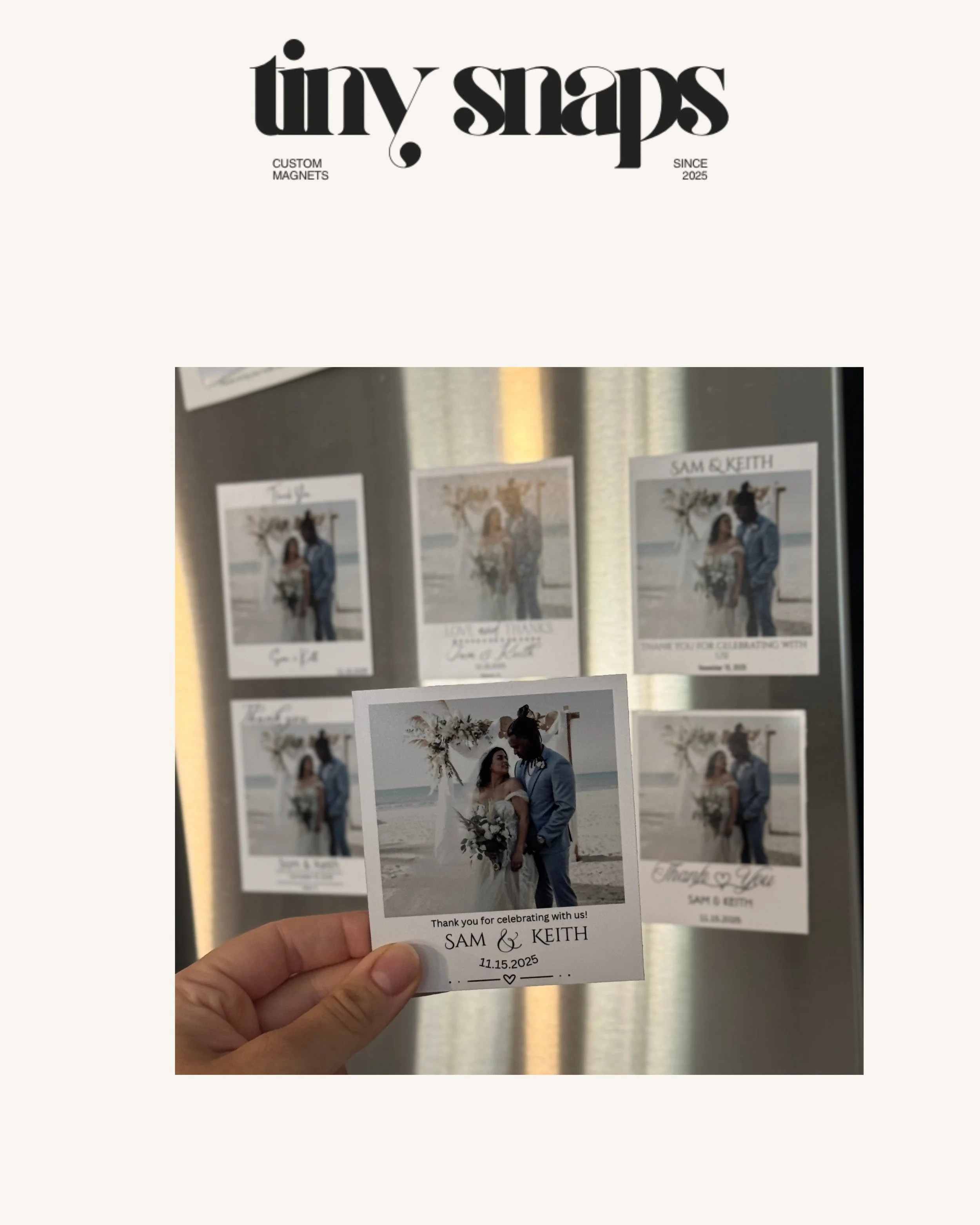 Shop Wedding Photo Magnet Favors- Personalized Wedding Favors from $2.00 Select Size Small 20 Small 50 Small 75 Small 100 Small 110 Small 120 Small 130 Small 140 Small 150 Small 200 Large 20 Large 50 Large 75 Large 100 Large 110 Large 120 Large 130 Large 140 Large 150 Large 200 Generic Sample Personalized Sample Add to Cart Added! Flexible Mini 2026 Photo Calendar Magnets $35.00 Add to Cart Added! Retro Personalized Polaroid Magnets from $12.00 Select Size Small set of 6 Small set of 9 Small set of 12 Small set of 24 Large set of 6 Large set of 9 Large set of 12 Add to cart Added! Personalized 1" Glass Round Magnet Set from $12.00 Select Quantity 5 6 8 12 20 Add to cart Added! Personalized 2x2 inch square photo magnet from $9.00 Select Quantity 3 6 9 12 Add to Cart Added!