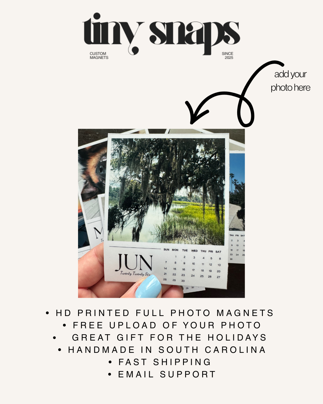 Shop Flexible Mini 2026 Photo Calendar Magnets $35.00 Add to Cart Added! Retro Personalized Polaroid Magnets from $12.00 Size: Select Size Small set of 6 Small set of 9 Small set of 12 Small set of 24 Large set of 6 Large set of 9 Large set of 12 Add to cart Added! Personalized 1" Glass Round Magnet Set from $12.00 Quantity: Select Quantity 5 6 8 12 20 Add to cart Added! Personalized 2x2 inch square photo magnet from $9.00 Quantity: Select Quantity 3 6 9 12 Add to Cart Added!